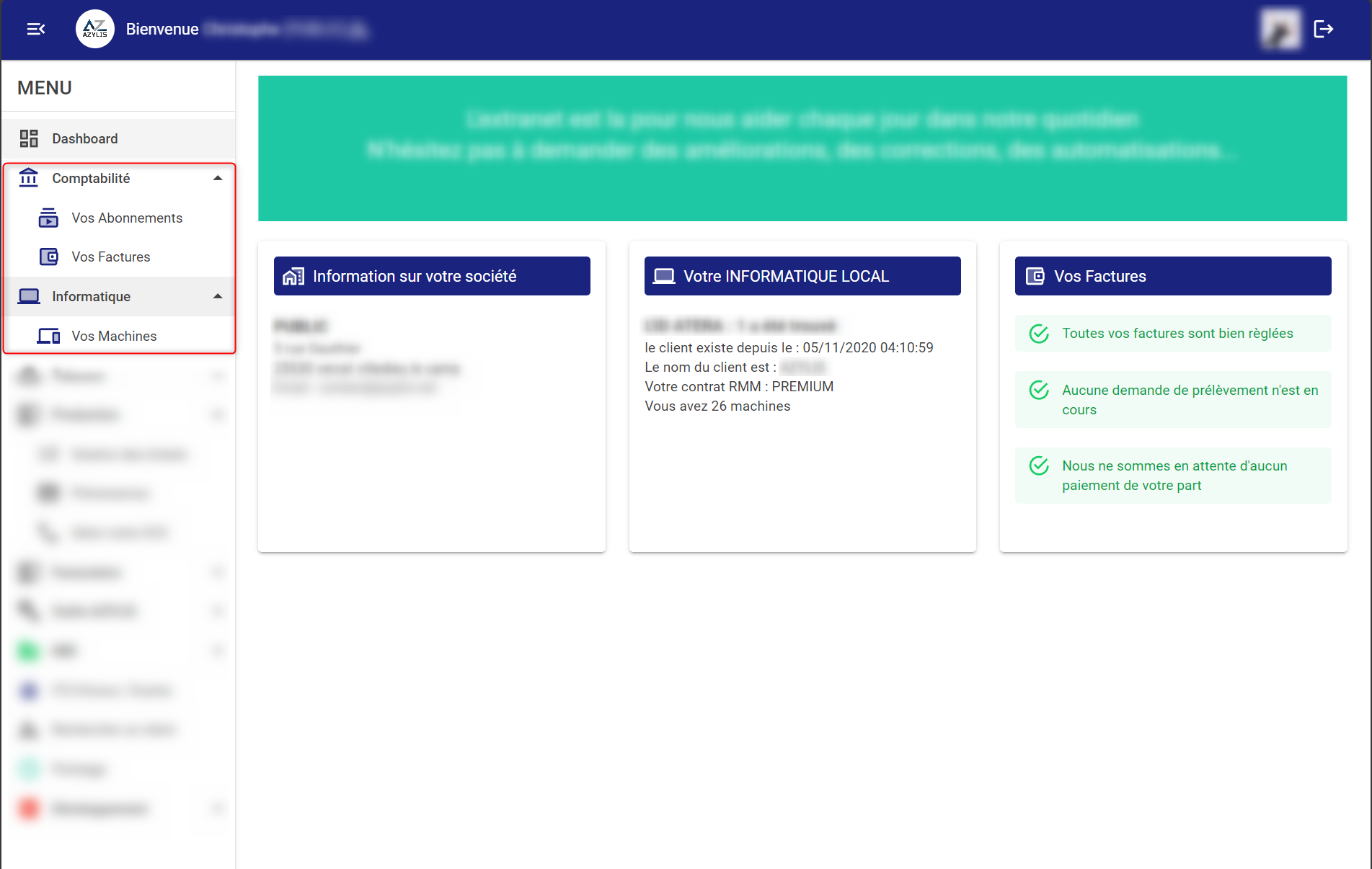 Nous mettons à disposition un extranet, les modules suivant sont actuellement disponibles :